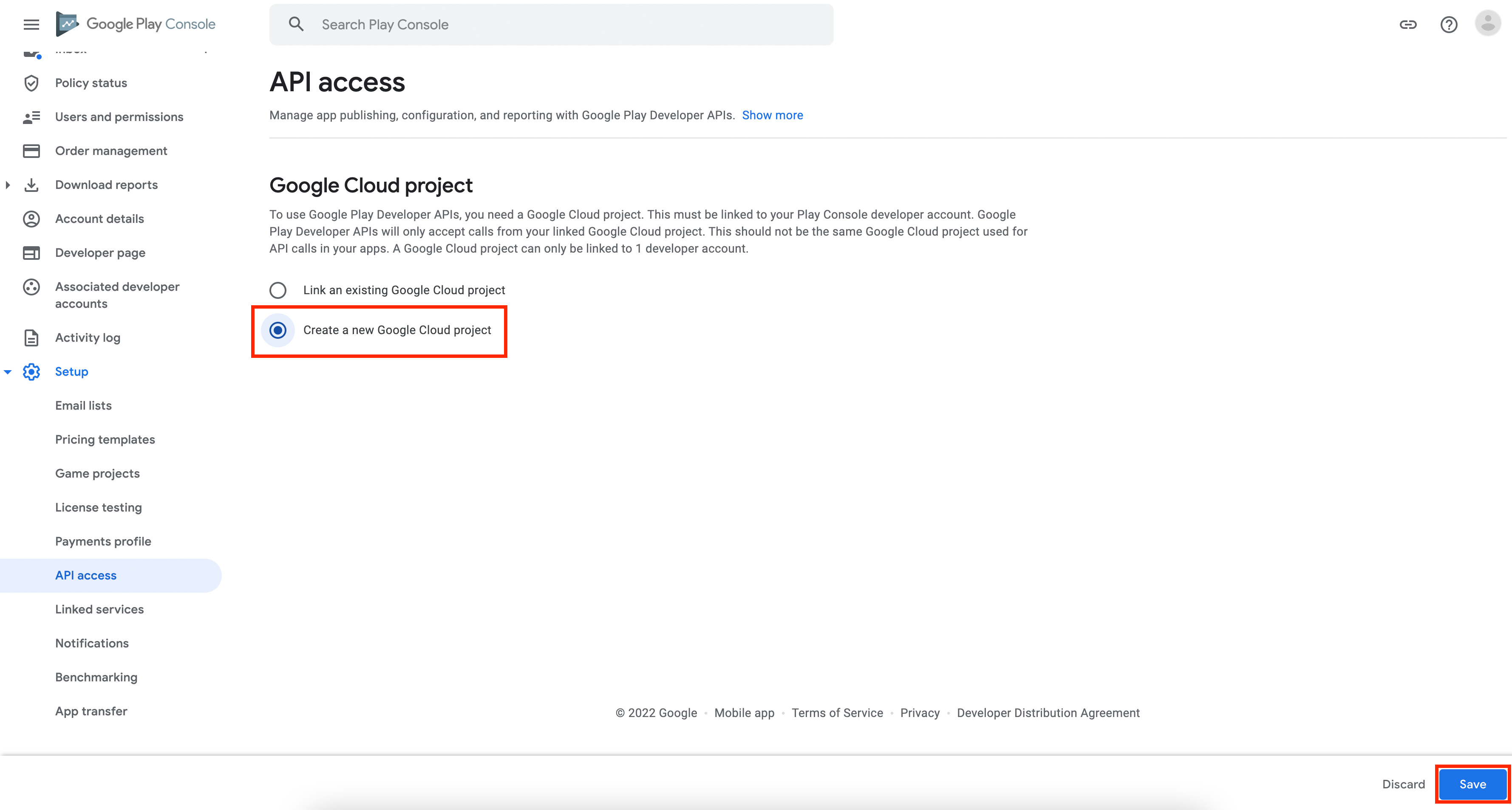 9. Gib einen Namen für das Servicekonto ein. Wir empfehlen dir, die eindeutige SKU deiner App zu verwenden. Wenn du ihn eingegeben hast, klicke auf "Erstellen und fortfahren".
